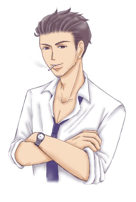 腕まくりしてるのを描きたかったのでジャケットはナシにしたのですが、結果として彼だけ上半身ほぼ全て描くことに……😅