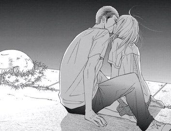 The way he is holding her chin and her blush
