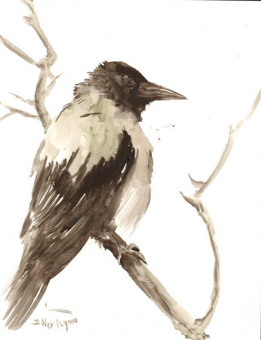 Hooded Crow painting, originalw atercolor 14 x 11 in, black and white original wall art by… https://t.co/ctPwPQIOz8