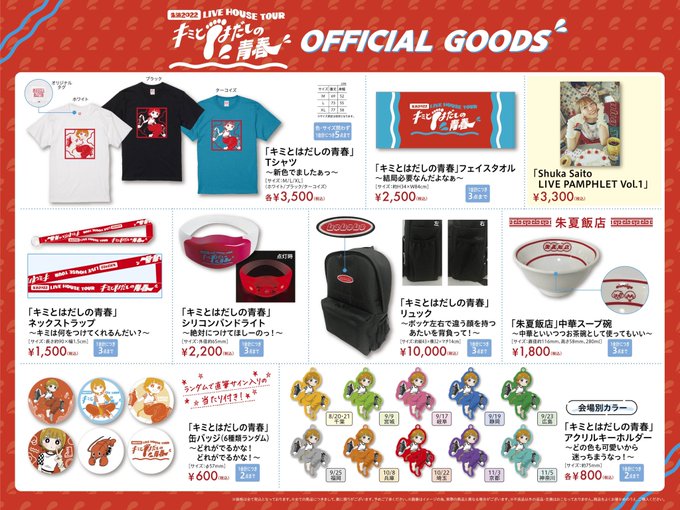 現在ツアー中の朱演2022 LIVE HOUSE TOUR「#キミとはだしの青春」10月公演以降の会場でのグッズ・CD先行販売時間のお知らせです!各公演の詳細は下記、HPリンクからご確認ください!