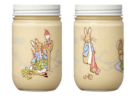 ピーターラビット追記2)1980年から1990年代までキユーピーマヨネーズがCMのイメージキャラクターに起用したのを切っ掛けとして、ピーターラビットをデザインした瓶入りマヨネーズが1998年までと、2008年~10年まで販売。器