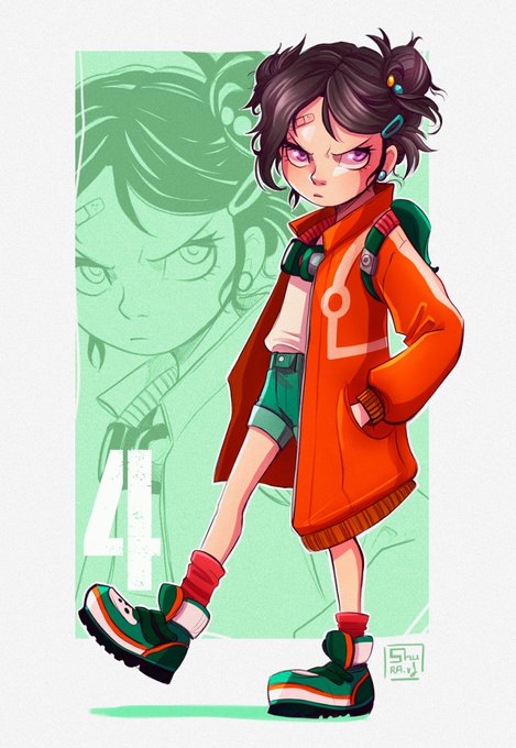 He querido poner todas las variaciones de ropa de mi último OC en la misma hoja💛🧡💜❤️