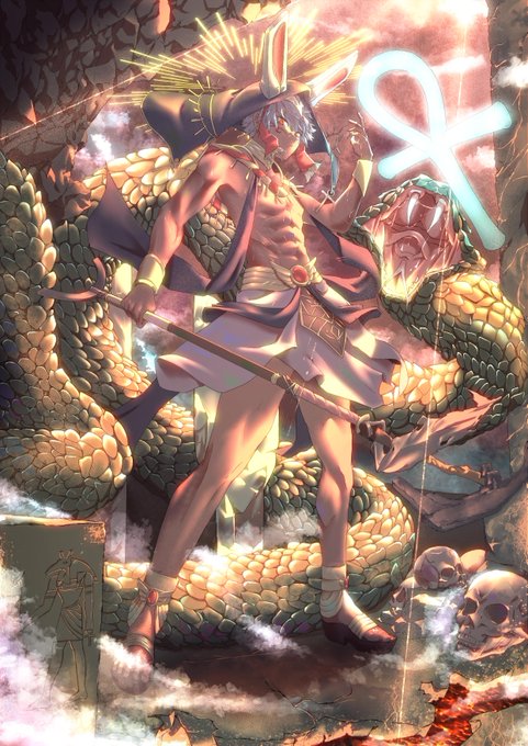 「據說賽特是唯一能夠抗衡黑暗之蛇阿波菲斯的神, 他從毒蛇阿波菲斯手中救出太陽神拉,成功讓拉完成冥界之旅,拉亦由地平線升起回到天界。」 酒仙桧生, 戰神賽特Version (今日起身之後最幸福嘅事, 唔係見到太陽光, 係見到龍爺終於衝線嘅阿拉之光!!!!www 感謝阿😍😍😍)