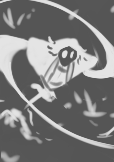The pose saw changes during sketching. While the idea of adding Moltres in the background was there from the start, it was dropped until I decided to add the silhouette at the very end.