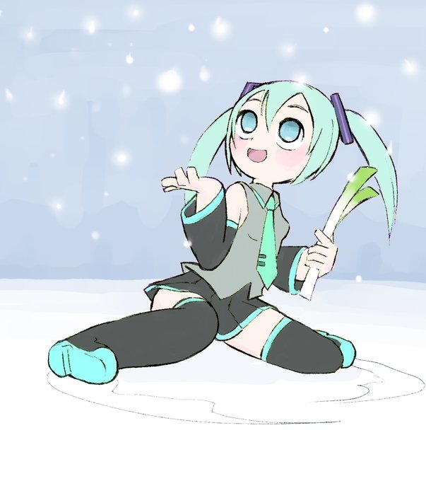 「雪だーっ!」 必要火急のネギ購入帰りにスリップして雪に気づくミクさん。 #しっかりしてミクさん #おうちでお絵かき https://t.co/7U1dQRFA4p