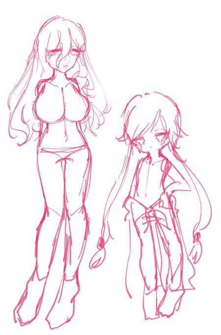 うちの子巨乳キャラは楸さん(落描きですまぬ、1枚目)とみろるちゃんくらいやで #うーぷろ絵