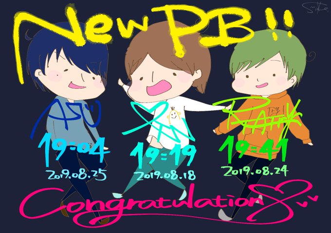 みとん( @mittonton10 ) ↓ RTAチャレンジ勢( @RTAtry ) ↓ ASU( @asua_su ) 20枚トリオで自己べリレーとかなかなか熱いので…落書きクオリティですがたくさんのおめでとうを込めて🎉🎉