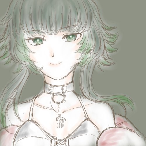 塗り方模索中 ベタ塗りペンで嘘っこ影付けるの楽しい〜スカーフと眼鏡は力尽きてエアブラシです
