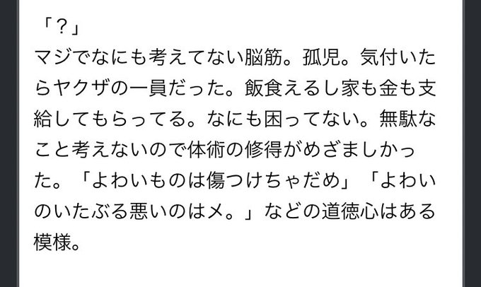 中の人(闇のオタク)の被害者その1。人の心で戴いた秘匿HOがあまりにも性癖ぶっ刺さった結果である。本当に中の人から生まれたんかってくらい毒気が無くとてもとてもお淑やか。まぁある意味中の人に近い部分もある。一人称は「私」。