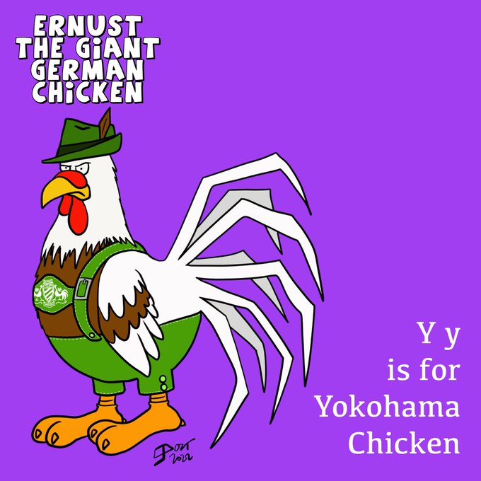 Y is for Yokohama Chicken in the @AnimalAlphabets breeds alphabet. Today’s mash up is Ernie the giant chicken from @FamilyGuyonFOX Here’s his ancestor, Ernust #FamilyGuy #art #cartoon #ArtistOnTwitter #procreate #animalalphabets #illustrationart time-lapse process in comments ⬇️