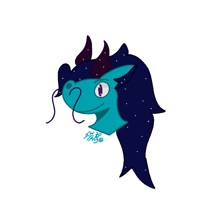 Haven't drawn dragon Tag in a good amount of time, so drew him again with a few little design changes, such as a slightly brighter dark blue and galaxy ponytail
