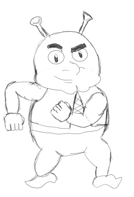 @CrispyFrise Here's my Shrek drawing from memory that repurposed into Wario-fied version of him. (2021-2022)