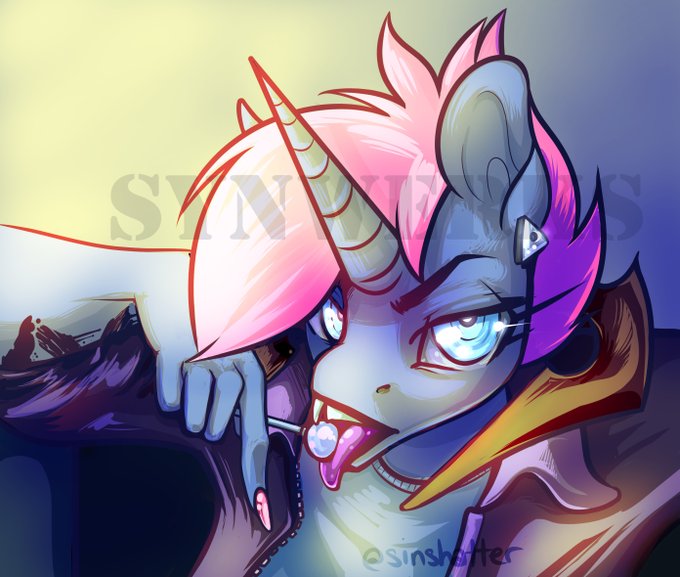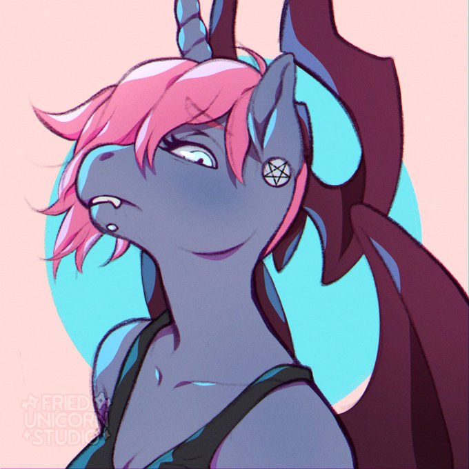 @friedunicornstu *gently places Synny* (the demon horns can face any direction but its usually pointed up or on the sides like in these images :3)