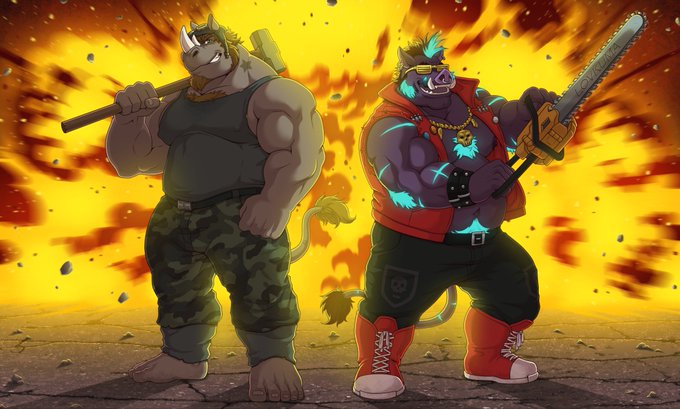 Featuring my boar Slate as Bebop and @AdharcRhino as Rocksteady