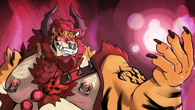 My demon orc Thanatos possesses @TarkeTiger 's Tarke for a wild ride in their new fusion !