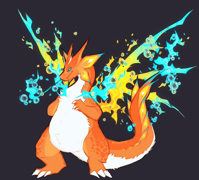 Lowest quality doodle of some slightly mitsuzune-like gmax charizards