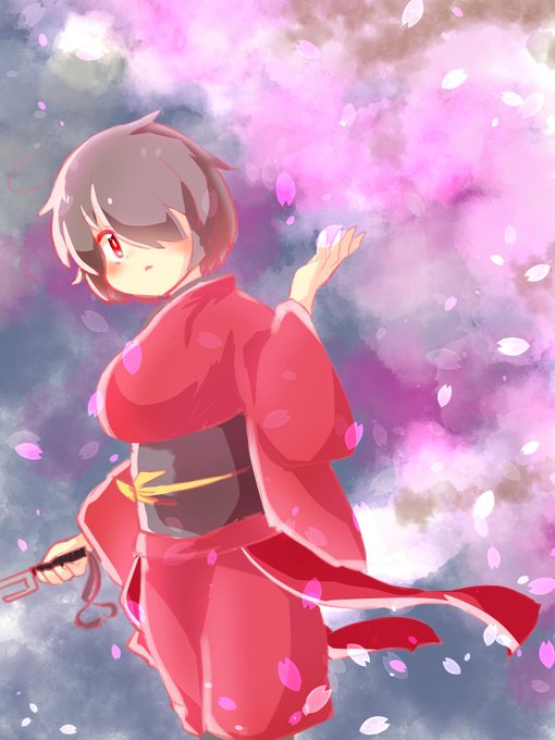 >この時期なんで、夜桜! お題箱より夜桜を描きました。 夜に見る桜もまた乙なものです。…ここまで明るくはないですけど。