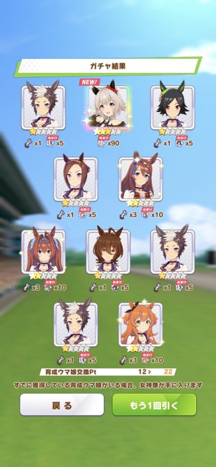 ドトウガチャの成果ですわ…!勝負服はあと2人!ドトウちゃんは箱のチケットで貰おう