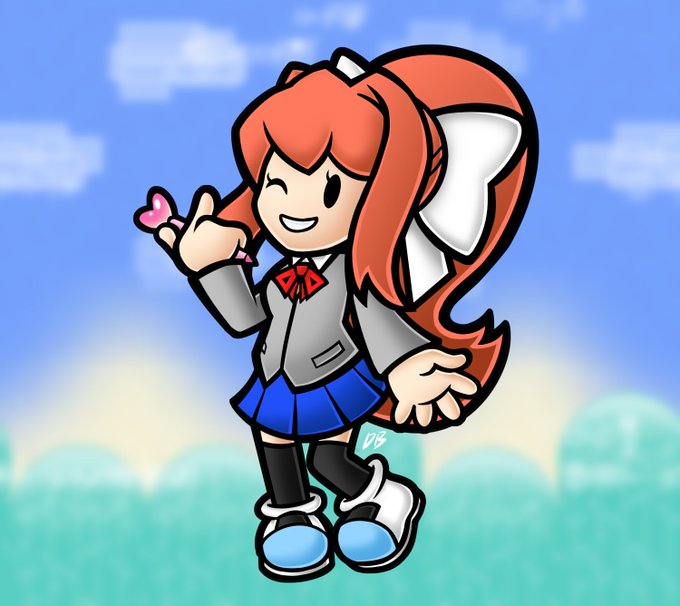 Felt like reposting my Paper Mario styled Monika ✍️