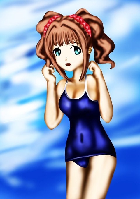 下手ですが過去絵なぞ…。 #くそ寒いので水着絵を貼る