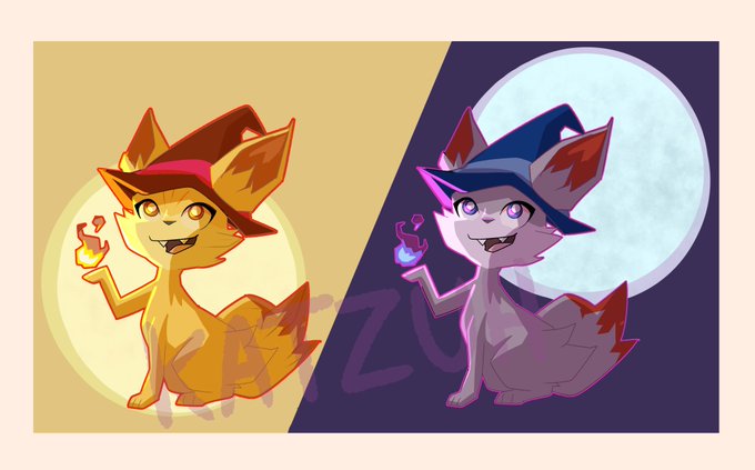 My friend told me to draw Fennekin with a witch hat, and I couldn't decide whether to do regular or shiny, so here's both lol