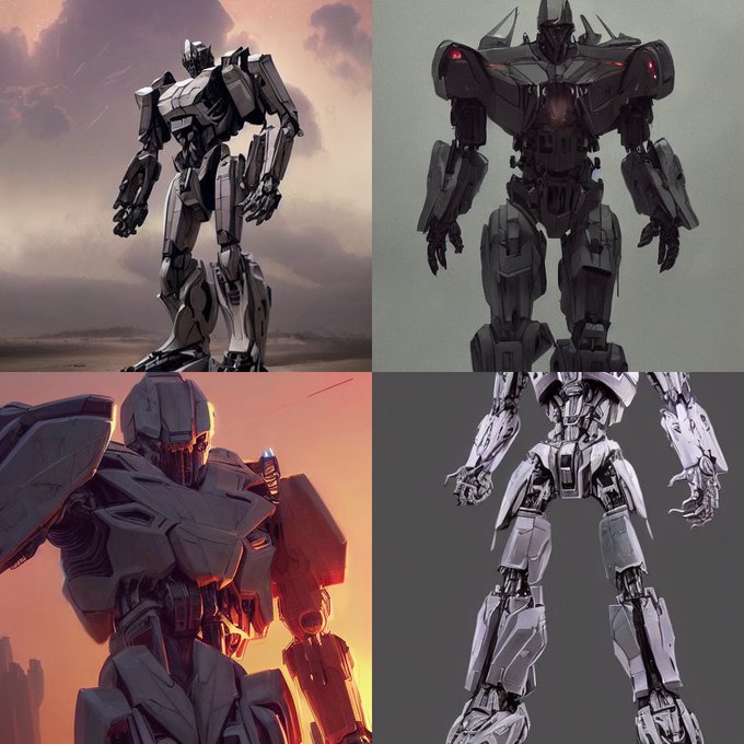Got into the #stablediffusion Beta and wanted to see how it handled Transformers VS Dalle 2. Same prompts, was trying for painted concept art of G1 #Megatron and G1 #OptimusPrime