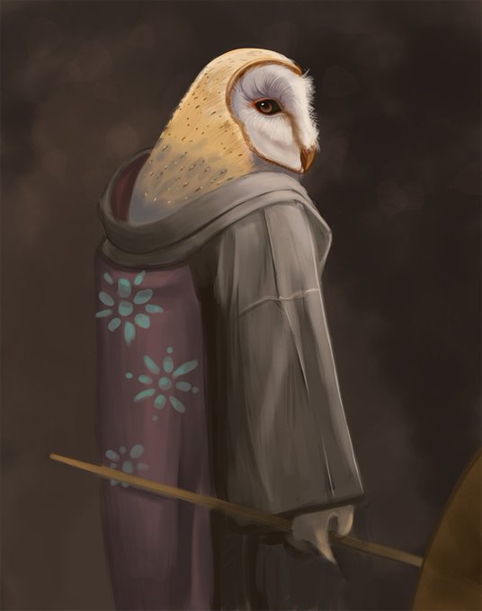 An update! Mr. Owl Kenku archivist is getting layered in shinies for my worldbuilding project. :)