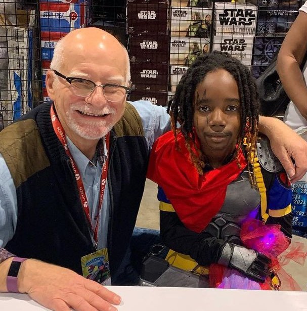 Chris Claremont, o maior roteirista da história dos X-Men, em uma Comic Con lá nos EUA, posando ao lado de um cosplay de Kid Bishop 😍😍😍
