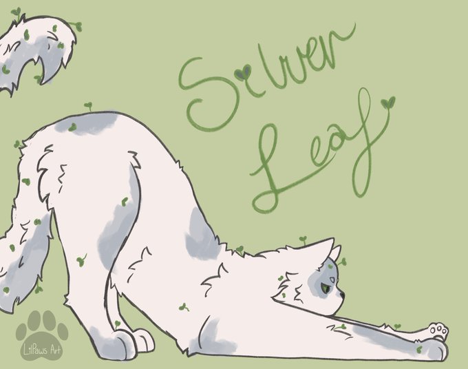 @felidaze_ This my babe Silverleaf. They're a medicine cat and their fur always has leaves, twigs, etc in it cause stuff just gets tangled up in their hair.