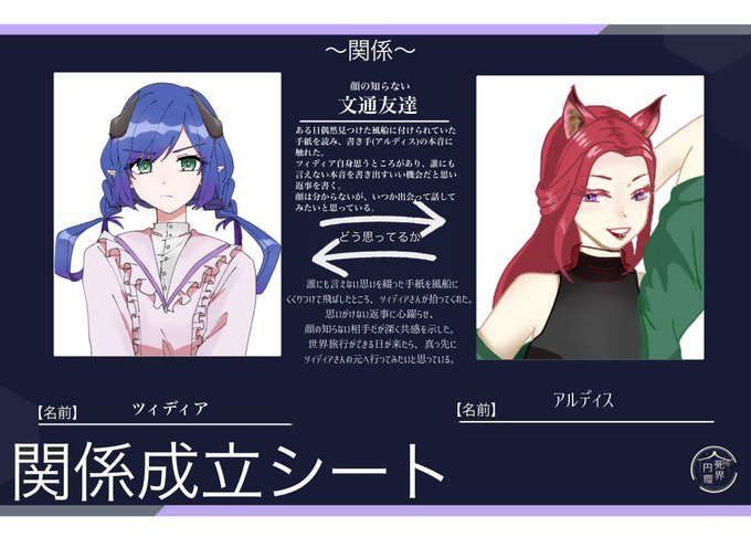 #人死界円環_関係成立 ツィディアさんと顔の知らない文通友達を組ませていただきました!よろしくお願いします☺️