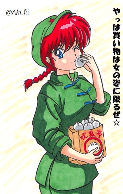 また中華まんが美味しい季節になった🍥 おつかれらんまちゃん #らんま #今日のらんまちゃん #過去絵を投げて絵を描いた気になろうキャンペーン