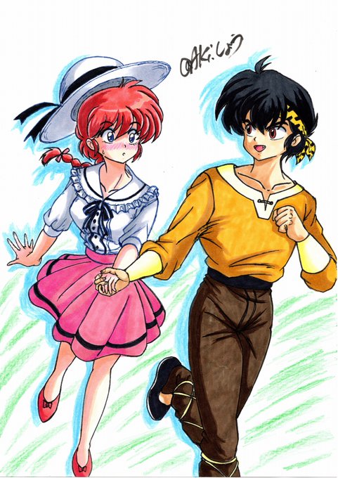 秋の夜長に水着祭りパート1🌟らんまちゃん&あかねちゃん!#らんま #るーみっく水着祭 #コピックイラスト #色鉛筆イラスト