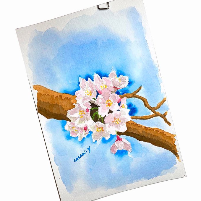 サクラを何種類か描いてみた、着色したものは写真を見ながら、他の3枚は現地でスケッチ。