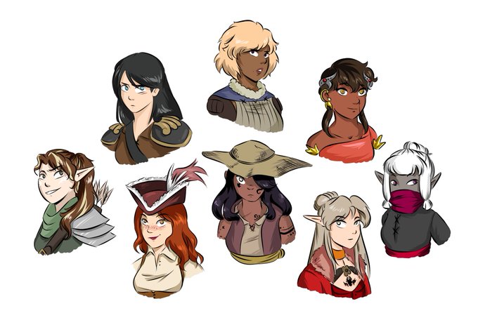 Doodles of the gals I’m currently roleplaying with/as in the Arpleiaverse. Ermen (top middle) belongs to @idrawsometimes