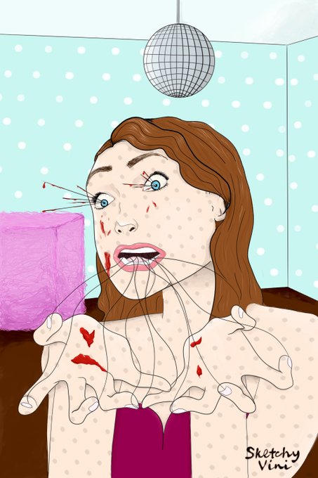 Pra esse desenho me inspirei em pop art mas, ao mesmo tempo, também queria fazer algo de horror.