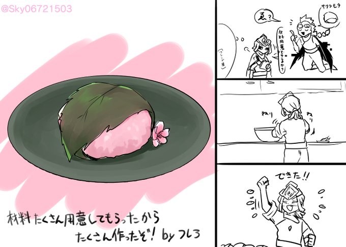 ディスコにだけ載っけとくつもりだったけど桜餅が思ったより美味そうにかけたので… 桜餅作ってくれるフレア 顔有り