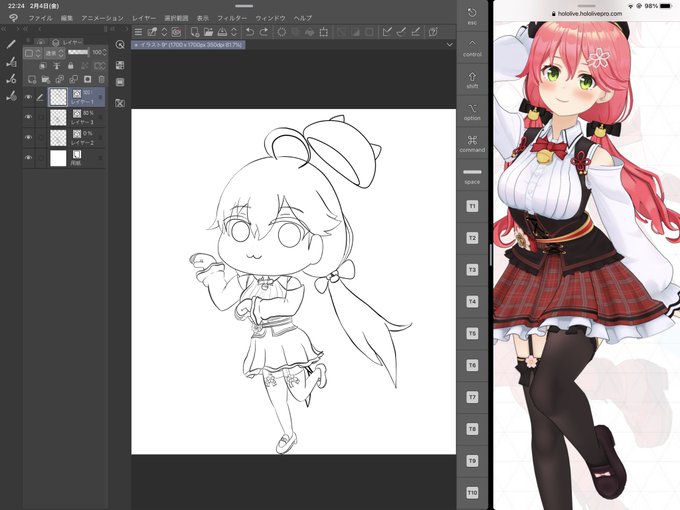 線画終われなかったかぁ、明日仕事終わったら線画の続き! バランスは良くなった気がするで!