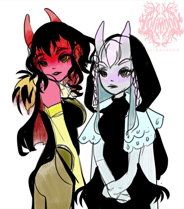 I wanted to warm up before drawing and @Lolimoog dropped this cute as heck sketched lineart of her friend's OCs on Patreon so I wanted to give the babes some colour. I tried to keep it loosey-goosey to better fit with the sketch vibe. ;3 Thx, Lolimoog!