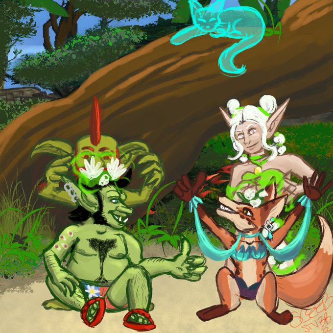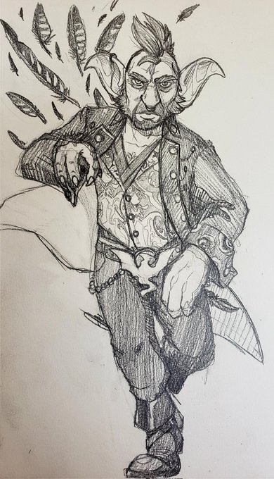 @Glory2Rome Here is my ex-pirate son, an older goblin who loves to travel. Except a Fertility deity bought him a house, & then another one. She didn't care how he felt about a lot of things, so he dumped her. She left, he kept the houses. Now he's very happy w/ a rascal of a gnome boyfriend.