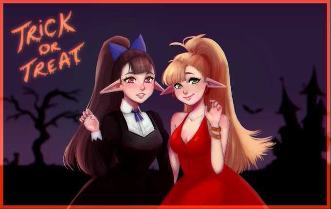 A Halloweenie gift for @annueart ! Meet his OCs Ami & Mai cosplaying Panty & Stockings!