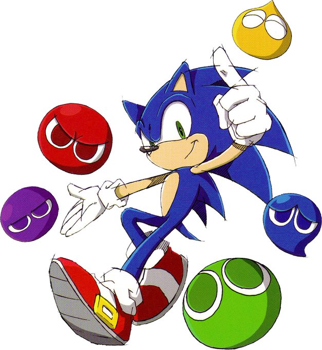 Sonic is here to keep the citizens of Beanville safe from Dr. Robotnik's mean bean machine! #SonicTheHedgehog @PuyoOfficial Art by yours truly.