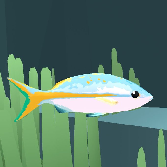 In Jellyworld there are plenty of fish! The yellow snapper (left) and my favorite, the Sunfish! (right). Jellyworld uses custom retextures on all the fish to fit the stylized theme. I'd like to give a big thank you to @danabananart for retexturing these two! #VRChat