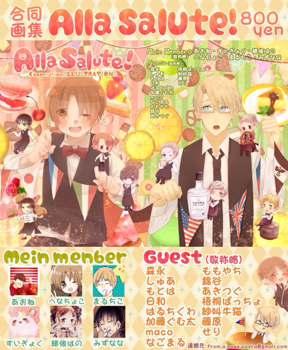 【宣伝】鼻からパスタ🍝の画集「Alla Salute!」を5/5の東京世界会議L38にて販売予定です!メインメンバーを始め、ゲスト様のイラストもとても豪華な一冊となっております。よろしくお願いします!(◍>ᴗ<◍)💕