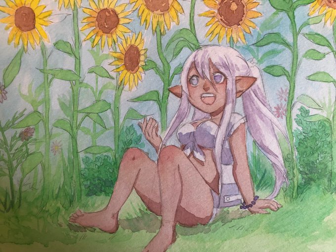 #lalafell #watercolorffxiv #sunflowers #ffxiv