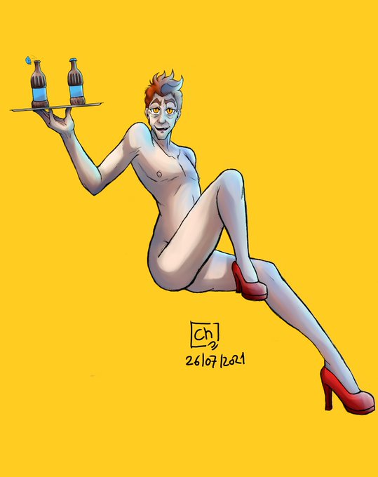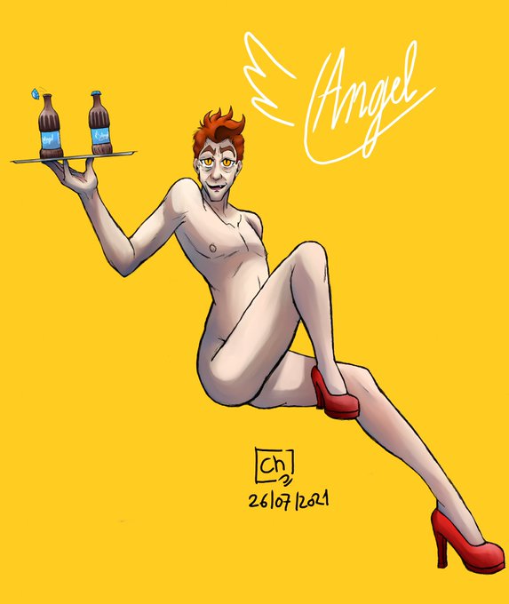Aziraphale to launch its brand of hot chocolate. Crowley posed for her pin-up ad. #goodomens #crowley #ineffablehusbands #pinup #ineffable