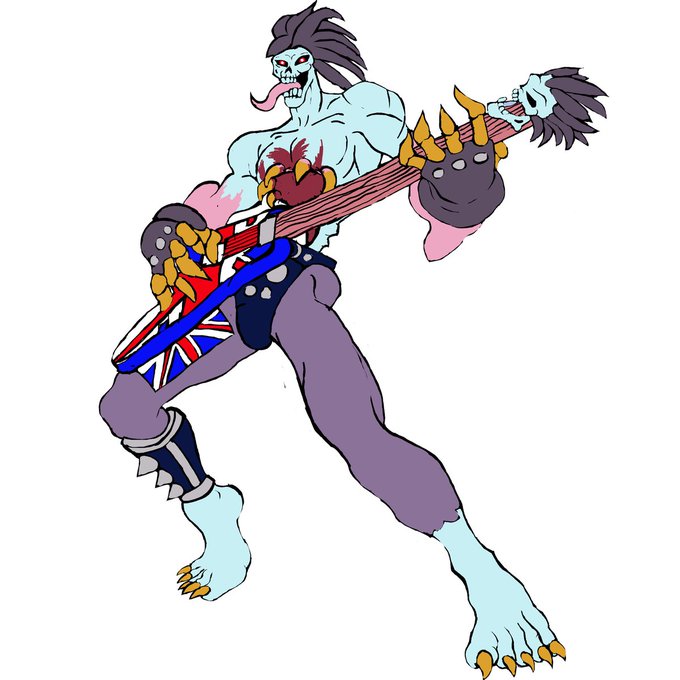 My arm, I can't feel my arm. Also curse you guitar!!! I have one more pose of Raptor to do, and then I need to take a break from my metal head blue boi.