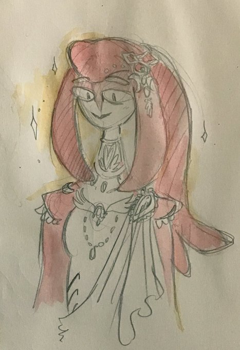 I used some glitter watercolor paints on a zelda botw fanart sketch I did a few weeks ago, making Urbosa look very cool and ghostly but also very hard to photograph