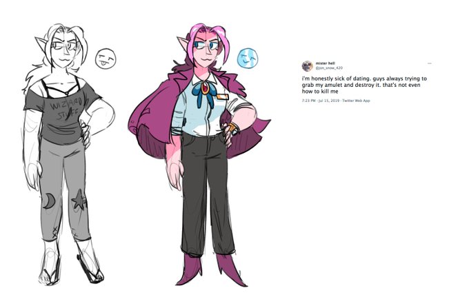Zachary has been Revealed, so I can post these...early on in the design process Sara asked me to design her a couple of Wizard Goth outfits, which I had a lot of fun with. https://t.co/d89zO1zaK2