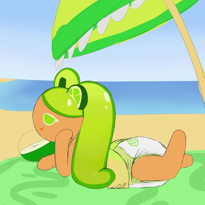 From last night's stream - Lime Cookie! Catching some rays at the beach.