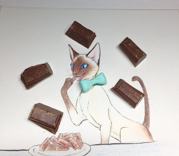 ショッピングとつまみ食い🍫 あ〜シャム猫達と買い物したい.. #siamese #cat #シャム猫 #切り絵